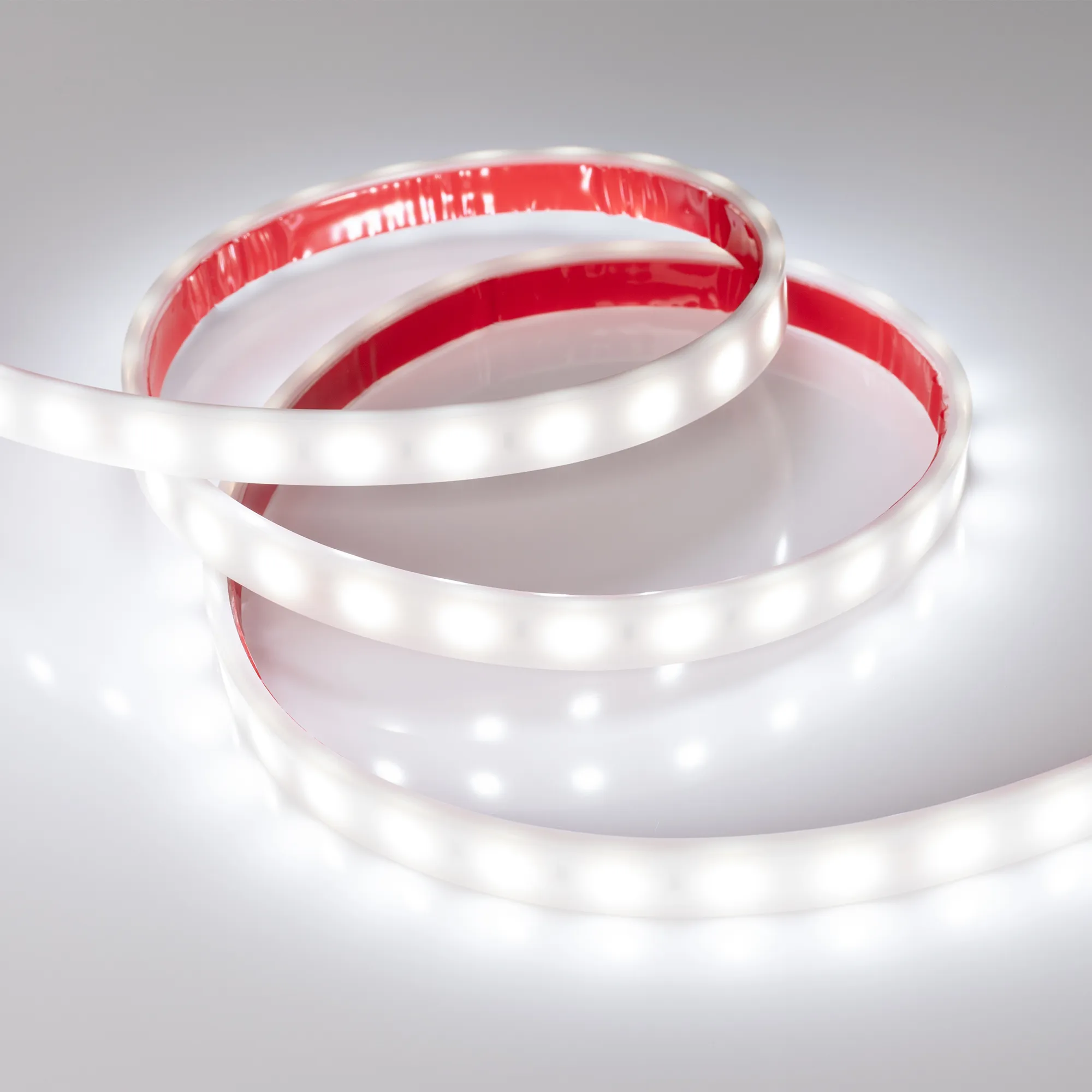 Герметичная гибкая лента (белая матовая силиконовая трубка) IP66, светодиоды smd 5060, 60шт/м (300шт на 5м), белая плата 10мм, скотч 3М. Цвет БЕЛЫЙ 5800-6500K. Питание 12V, мощность 14.4 Вт/м (72 Вт на 5м), угол 120°, цветопередача CRI>85. Размеры 5000х13x5мм. Мин.отрезок 50мм, 3 светодиода. Цена за 1м.