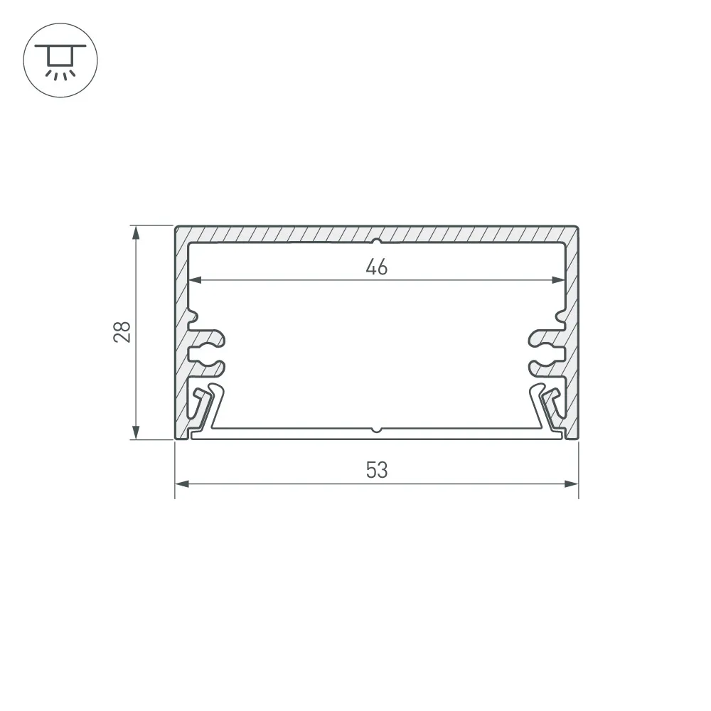 Алюминиевый анодированный профиль для светодиодных лент и линеек. Используется с микропризматическим прозрачным экраном или алюминиевым верхом. Габаритные размеры (L×W×H): 2000x53x28 мм. Ширина площадки для ленты 46 мм. Экраны, заглушки и другие аксессуары приобретаются отдельно. Цена за 1 метр.