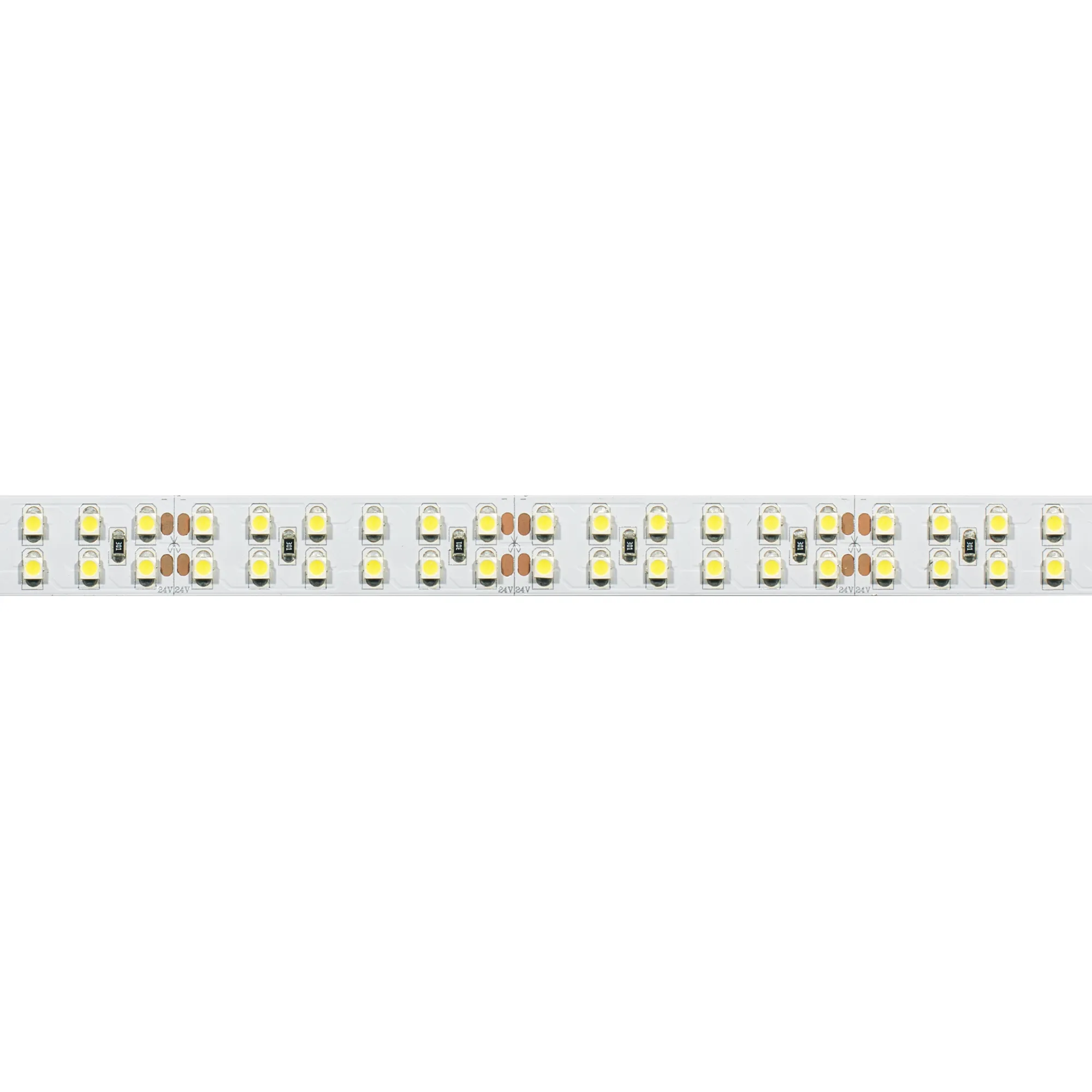 Широкая гибкая лента LUX, светодиоды 2x2 (2 ряда) smd 3528, 240шт/м (1200шт на 5м), белая плата 15мм, скотч 3М. Цвет ТЁПЛЫЙ 2600-2800K. Питание 24В, мощность 19,2 Вт/м (96 Вт на 5м), угол 120°. Размеры 5000x15x2,4мм. Мин.отрезок 50мм (12 LED). Цена за 1м.