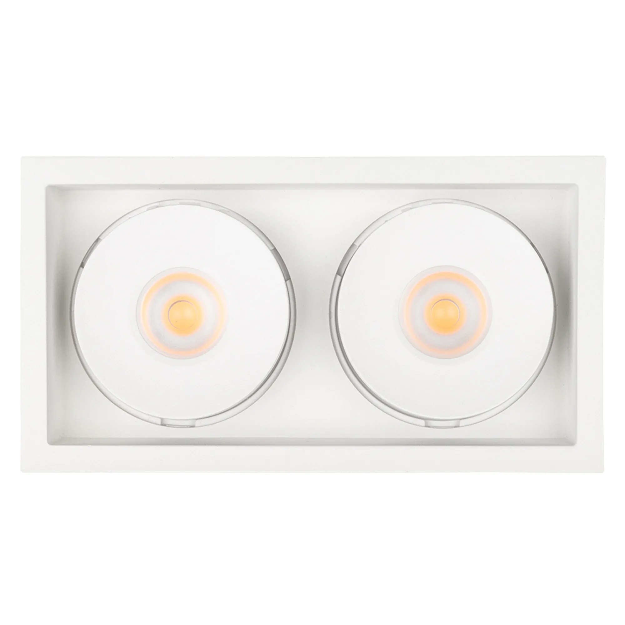 Встраиваемый поворотный светильник для потолка. Мощность 2x9W, цвет ДНЕВНОЙ 4000K, св.поток 1260лм, угол 45°, RA>90. Корпус прямоугольный белый. Питание AC180-240V. Размеры LxWxH 148x80x90мм. Установка в отверстие 140x70мм. Драйвер в комплекте 2 шт (30-45V, 220mA).