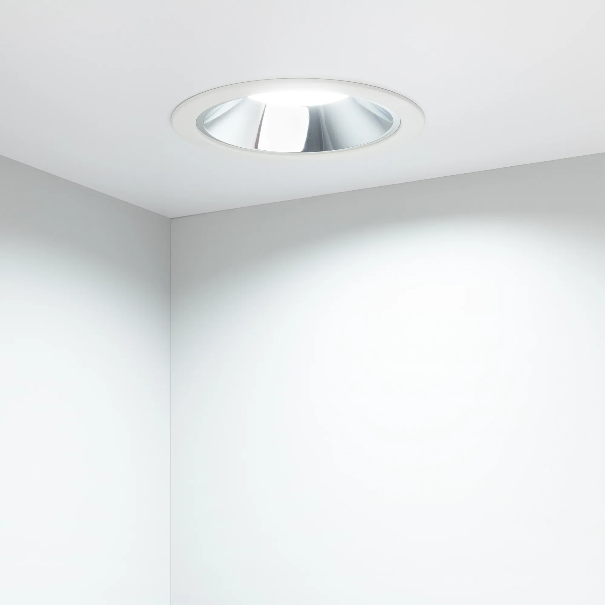 Светильник даунлайт с изменяемой цветовой температурой и переключателем на корпусе. Мощность 20 Вт, св. поток 2439-2517 лм, 100 лм/Вт, белый 6000К, или дневной 4000К, или теплый 3000К (выбор цвета свечения при установке, фиксированный), CRI>80, угол 80°, напряжение питания 230 В. Белый круглый корпус из алюминия, степень защиты IP20. Размер: диаметр 174 мм, высота 72 мм. Монтаж встраиваемый, установочное отверстие: диаметр 145-155 мм. Драйвер 18-30 В, 700 мА, пульсация <0,7%.