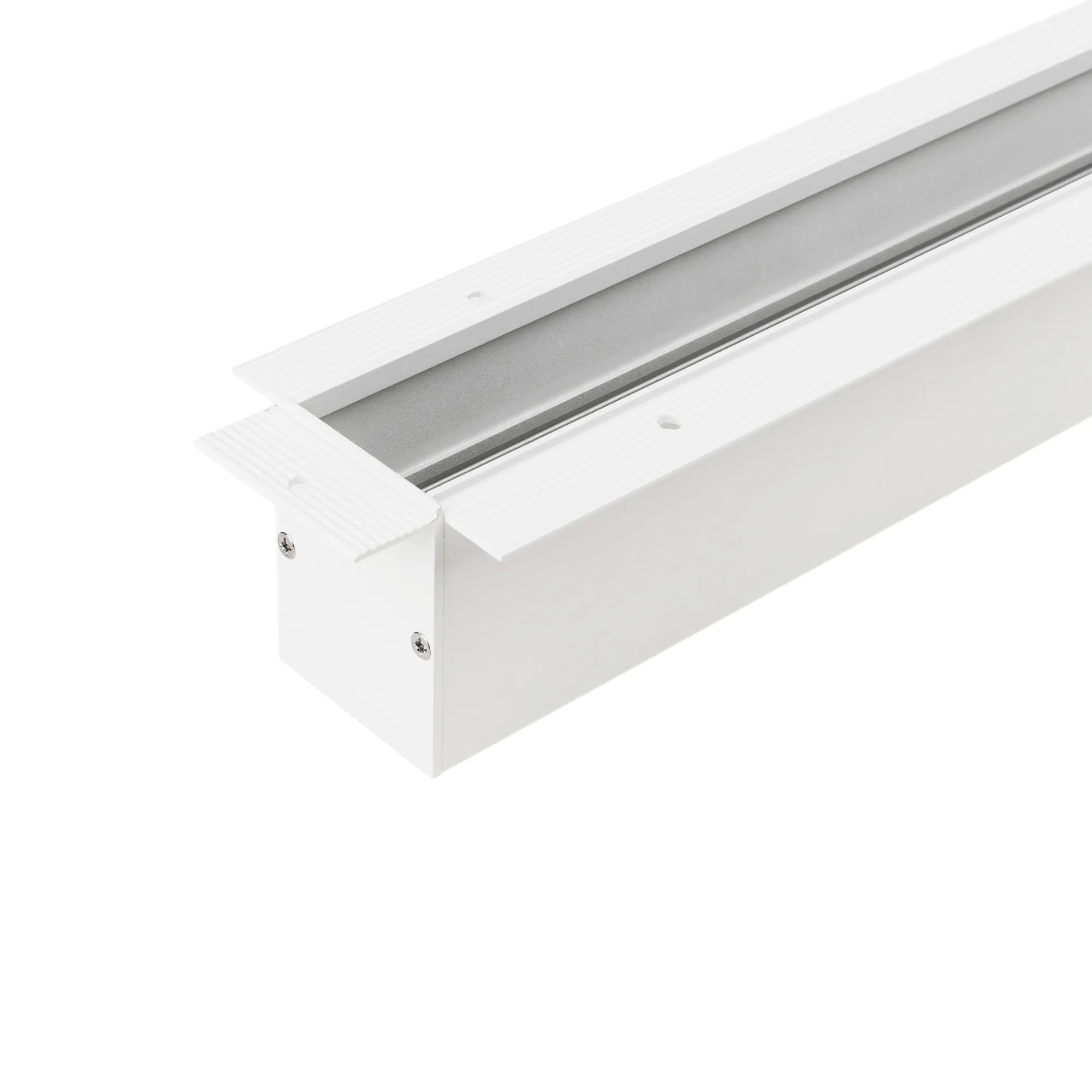 Встраиваемый магнитный трек с фланцем, длина 2040мм. DC24V. Материал алюминий, цвет белый. Две заглушки в комплекте. Размер ДxШxВ: 2000x45x60мм. Размер (с учетом заглушек и фланцев) ДxШxВ: 2040x75x60мм. Установка в отверстие ДхШхВ 2015x50x70мм.