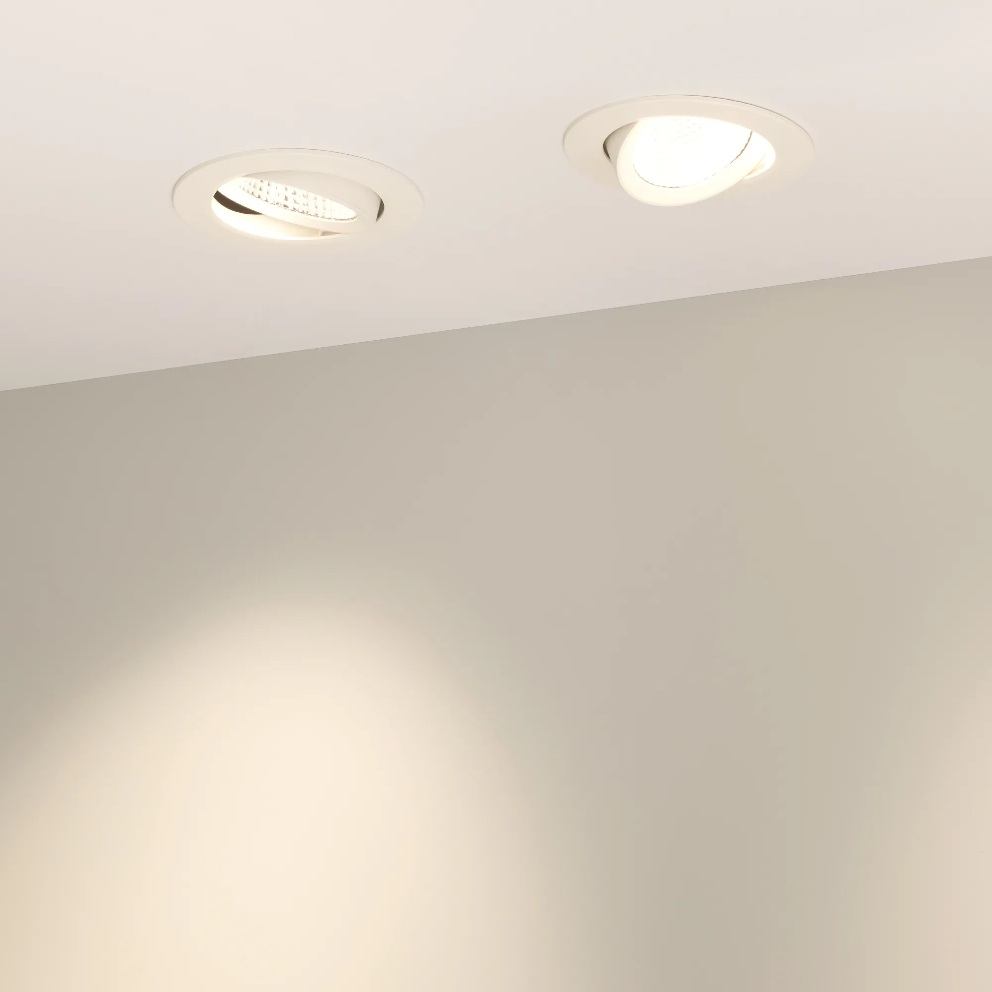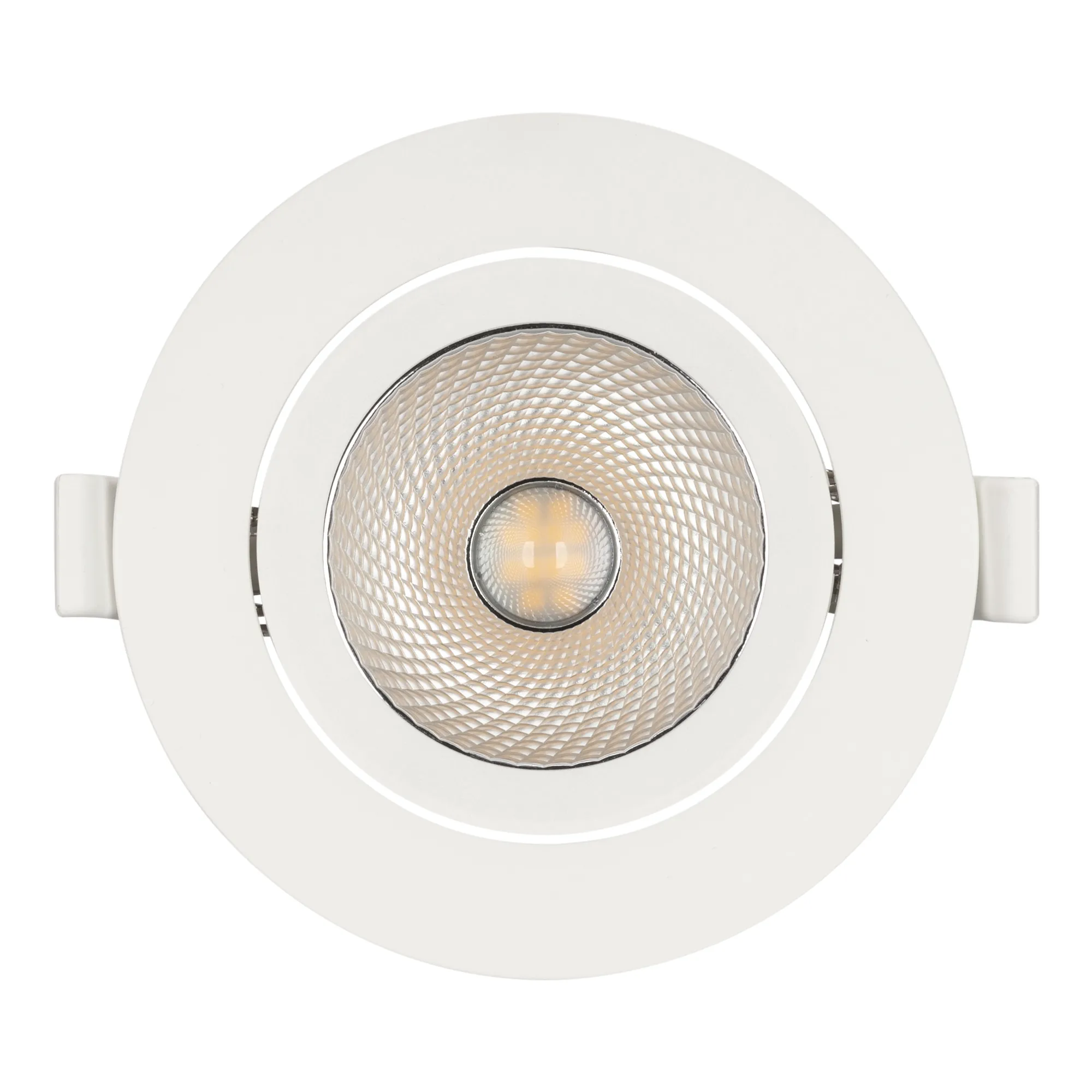 Встраиваемый поворотный светильник "даунлайт". Мощность 10 Вт, св. поток 900 лм, 90 лм/Вт, теплый 3000 K, CRI>80, UGR<19, угол 36°, напряжение питания 230 В. Белый круглый корпус из теплопроводящего полиамида, степень защиты IP20, угол поворота оси 30°. Размер: диаметр 105 мм, высота 51.5 мм. Монтаж встраиваемый, установочное отверстие диаметр 83-95 мм. Пульсация <2%.