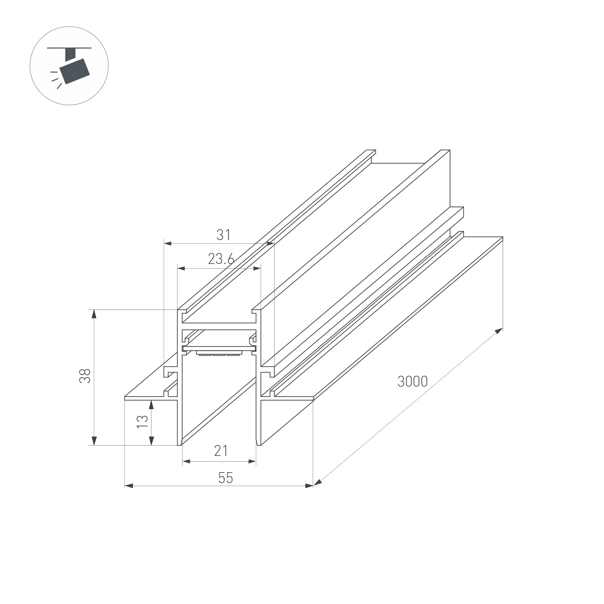 Трек встраиваемый MAG-TRACK-2538-FDW-3000 (BK) (Arlight, IP20 Металл, 3 года)