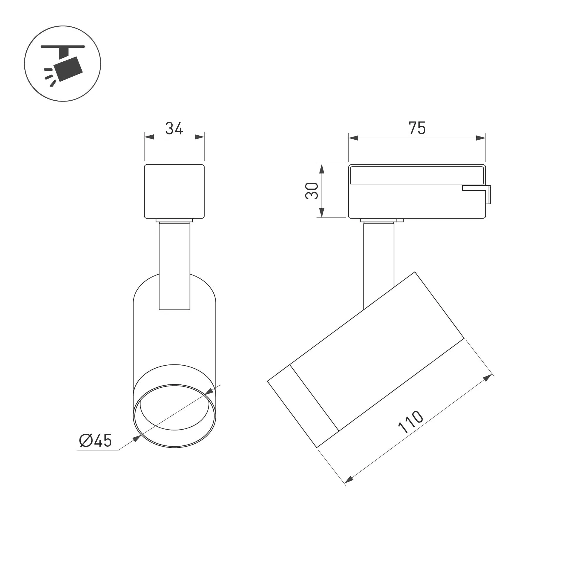Светильник для треков/шин 2 провода. Мощность 7 Вт, св. поток 540 лм, 77 лм/Вт, теплый 3000 K, CRI>94, угол 24°, напряжение питания 230 В. Золотой круглый корпус из алюминия, материал линзы PMMA , степень защиты IP20. Размер: диаметр 45 мм, высота 165 мм. Монтаж на трек 1-фазный. Драйвер встроенный 8.5-40 В, 150 мА., пульсация <2%.