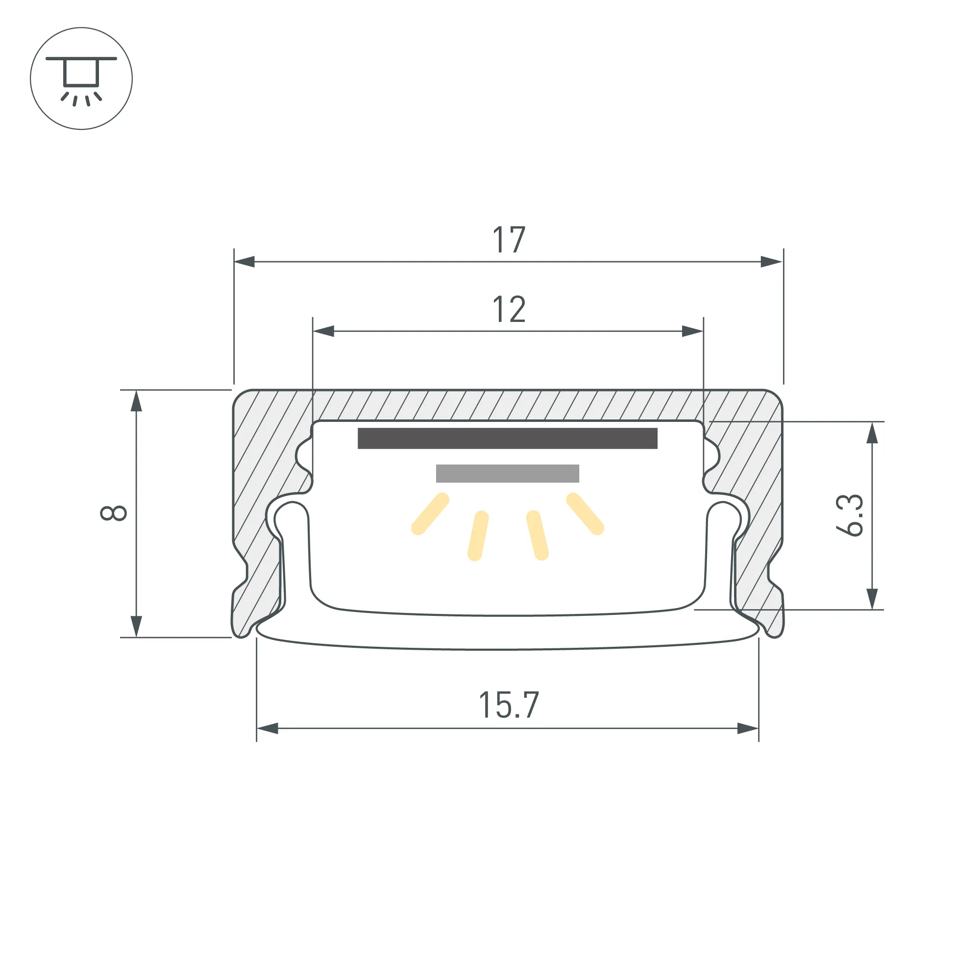 Алюминиевый накладной профиль для светодиодных лент и линеек. Цвет - белый RAL9003 (порошковая окраска), покрытие - зернистое. Габаритные размеры (L×W×H): 2000x17x8 мм. Ширина площадки для ленты 12 мм. Экраны, заглушки и другие аксессуары приобретаются отдельно. Цена за 1 метр.